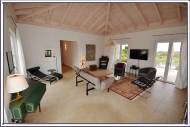 In the eastern part of the house are the two bedrooms and two bathrooms, one of which is en suite. Both bedrooms have air condition (the consumption is extra charged), patio doors with access to the natural pool.